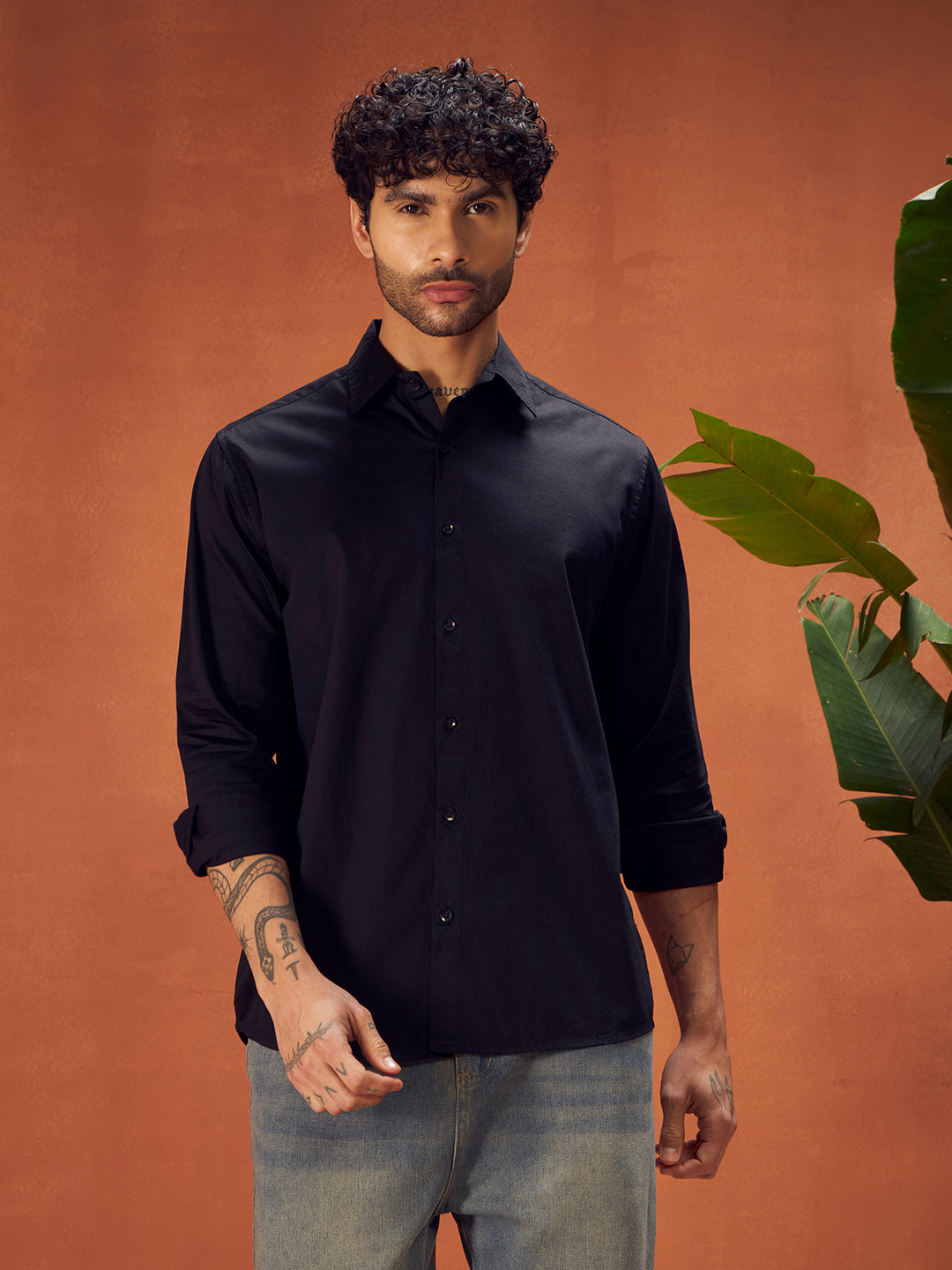 The Rich Black Pure Thread Cotton Shirt delivers a clean silhouette with breathable comfort—an essential for refined everyday styling.