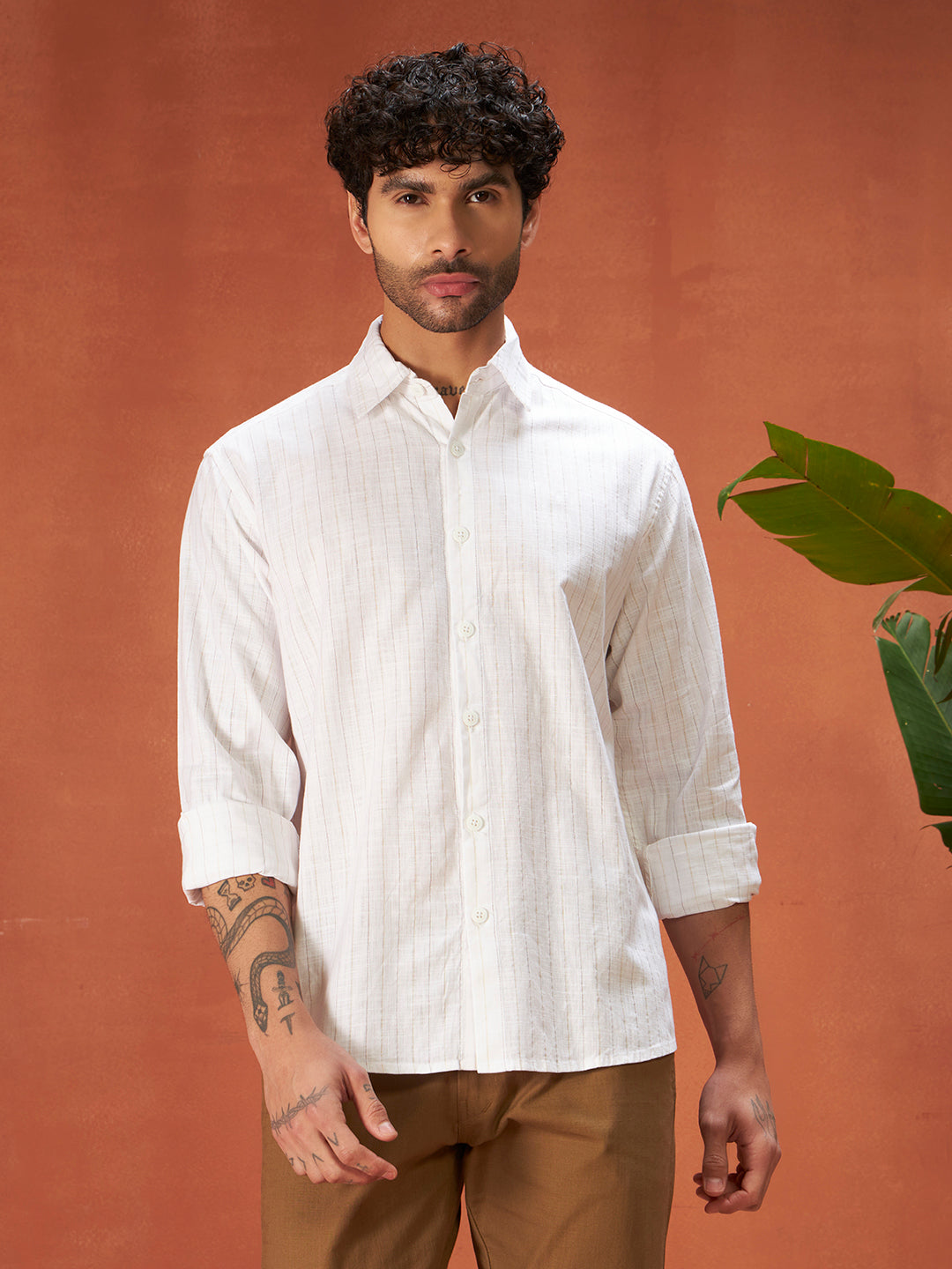 The Earth Brown Architect Linen Shirt features a clean, structured silhouette with an airy feel—designed for effortless, timeless wear.